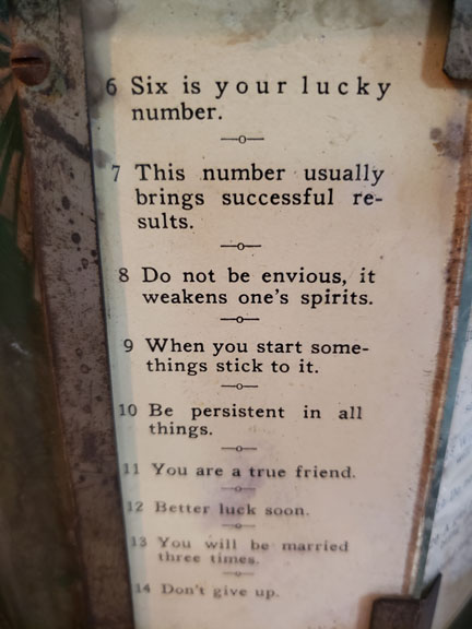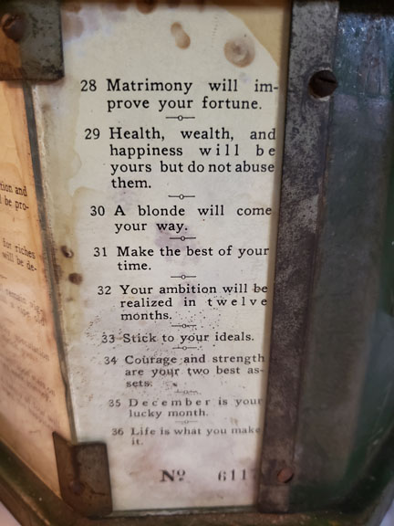 AD Lee made this trade stimulator in 1932. What is remarkable about this machine is that it is powered by electricity. This was significant for the time period, as much of America outside of the cities was still without reliable power. The globe on top is always lit when the machine is plugged in so to attract attention and pennies.